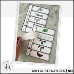 Flikbok som visuellt synliggör fjärilens kretslopp. Materialet finns i färg och svartvitt samt med och utan förklaring om man vill skriva meningar själv.