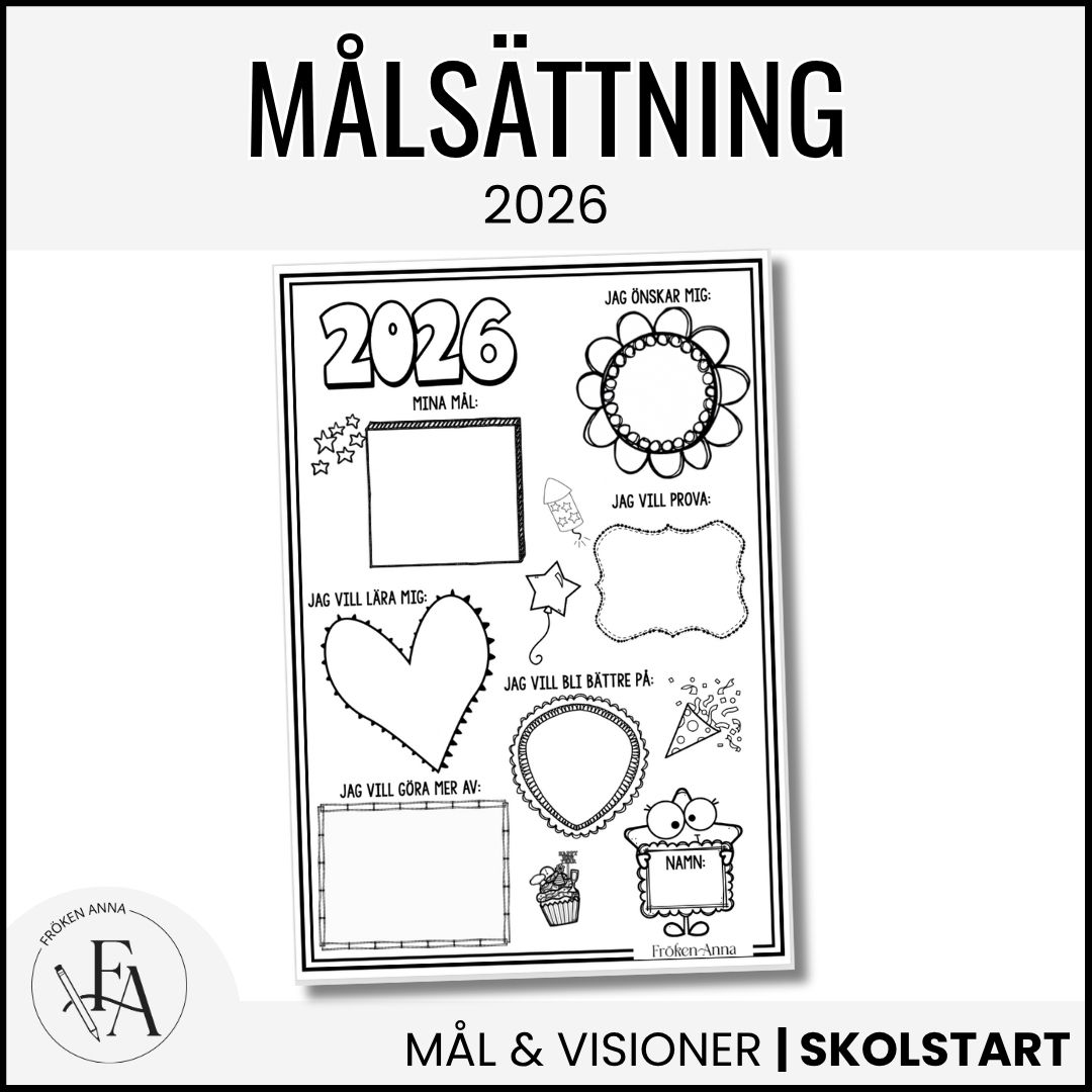 Arbetsblad till uppstartsdagarna vårterminen 2026. Låt eleverna färglägga arbetsbladet och rita eller skriv om sina mål och visioner för året.