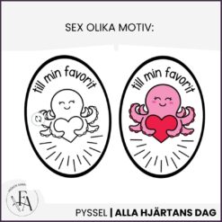 Sex söta alla hjärtans dag – kort att skriva ut, klippa ut och fylla i. Motiven finns i färg och svartvitt beroende på om du vill färglägga själv eller inte 🙂
