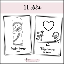 I detta skolmaterial ingår alla artiklar från barnkonventionen, redo att skrivas ut och lamineras. En större poster ingår också om man t.ex. vill göra ett temaarbete och sätta upp på väggen. Dessutom ingår 11 tips från olika lärare på hur man kan använda materialet.