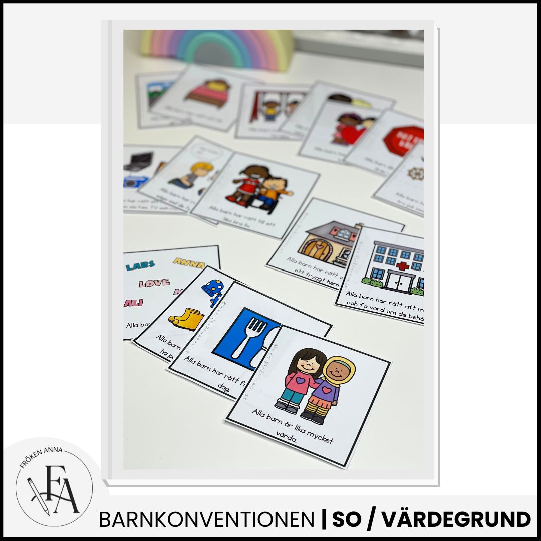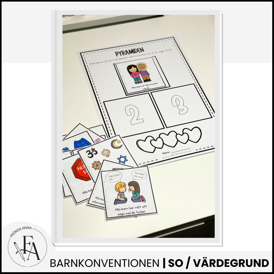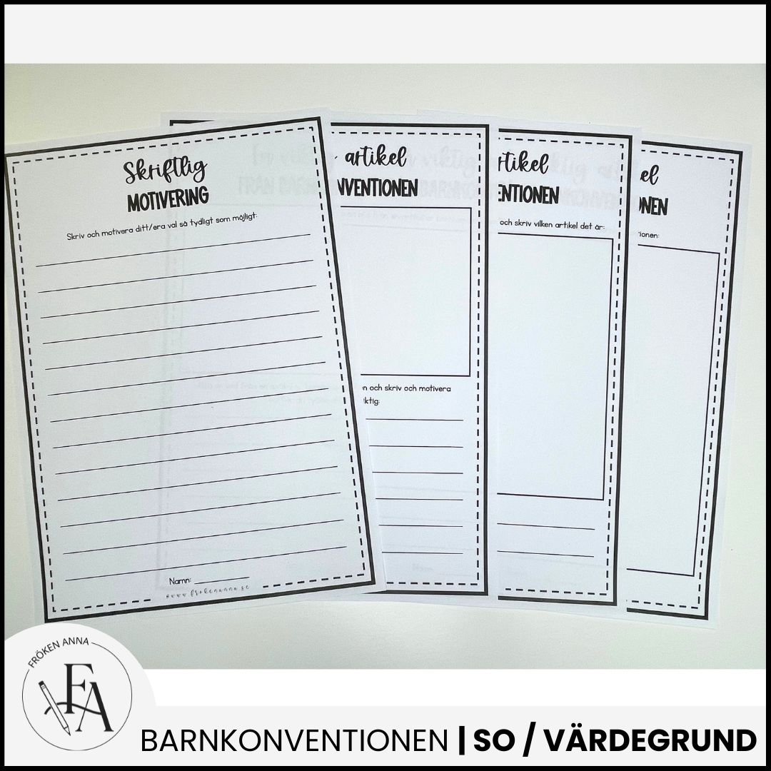 -Tre olika arbetsblad där eleverna får rita och/eller skriva om en viktig artikel från barnkonventionen.