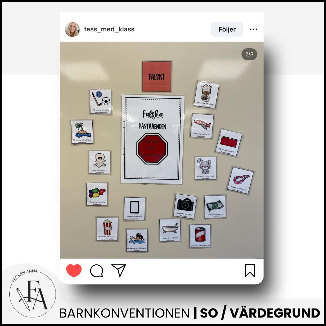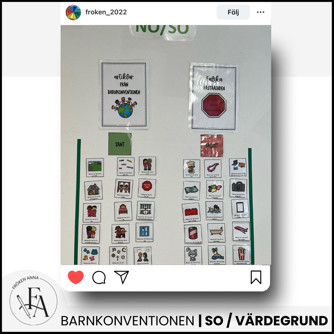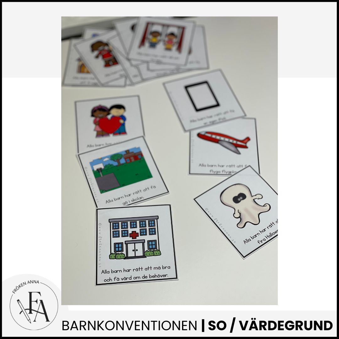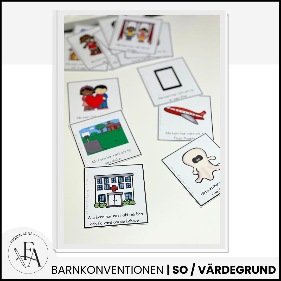 -Tre olika arbetsblad där eleverna får rita och/eller skriva om en viktig artikel från barnkonventionen.