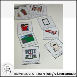 -16 bildkort med artiklar ur barnkonventionen (i färg och svartvitt)