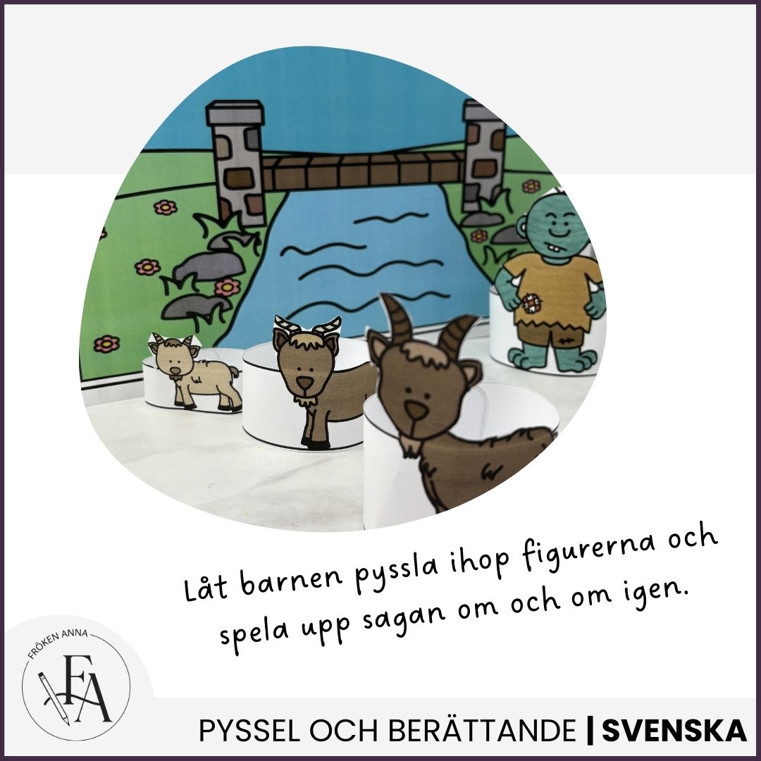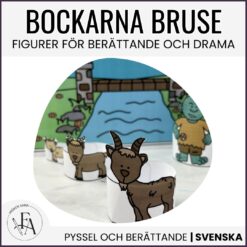 Ett kreativt och språkstimulerande material där barnen får färglägga, klippa, sätta ihop och spela upp sagan om Bockarna Bruse. Perfekt för temaarbeten om sagor, berättande eller svenska som andraspråk.
