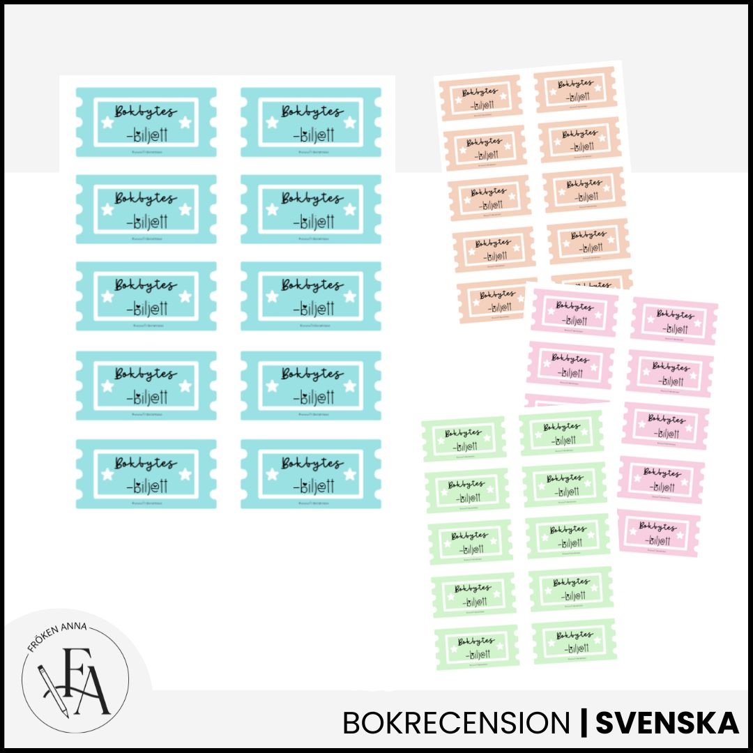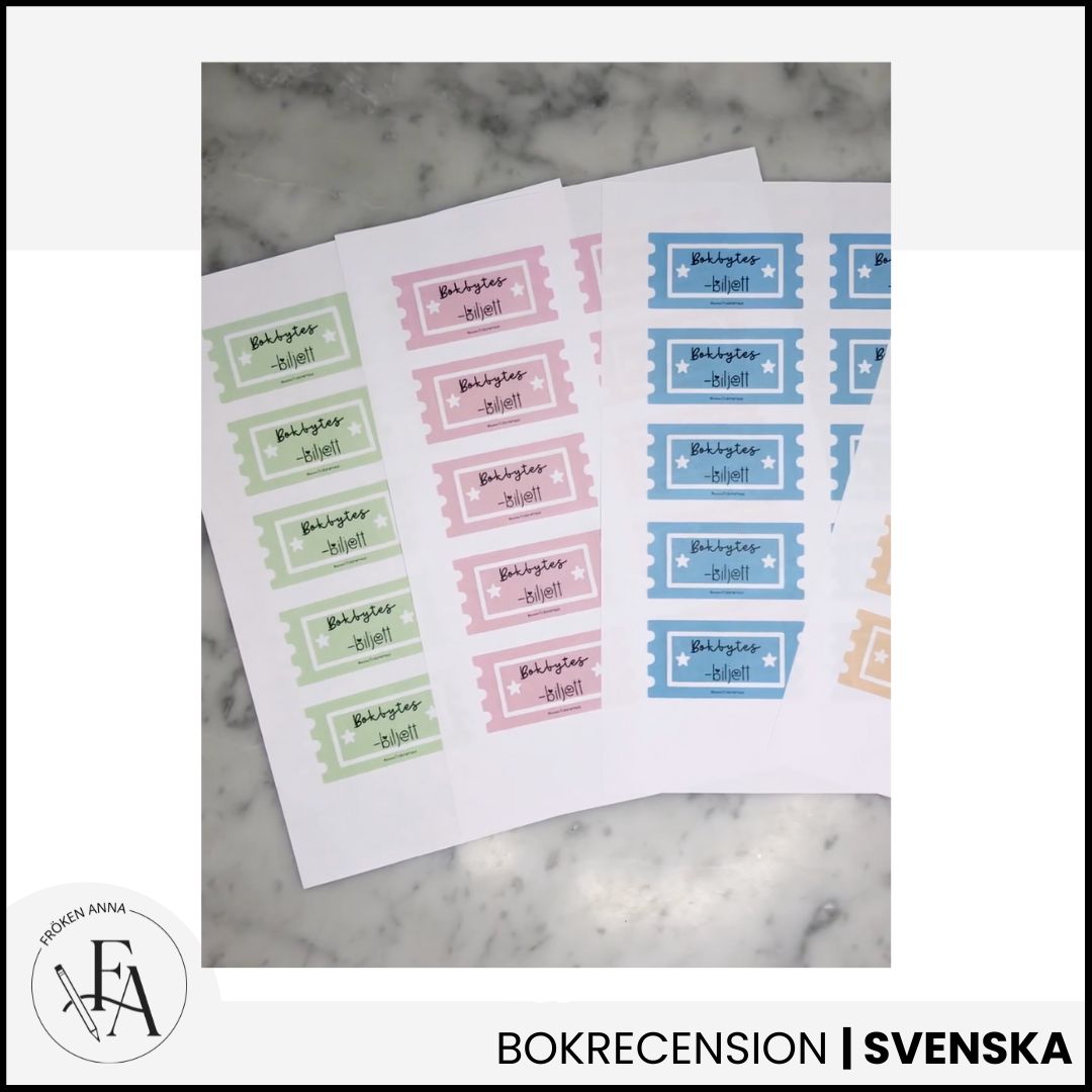 Anordna en bokbytardag i klassen eller varför inte flera klasser tillsammans? Biljetterna har fyra olika färger så bestäm själva om en biljett ska motsvara en bok eller om färgerna ska symbolisera olika antal böcker.