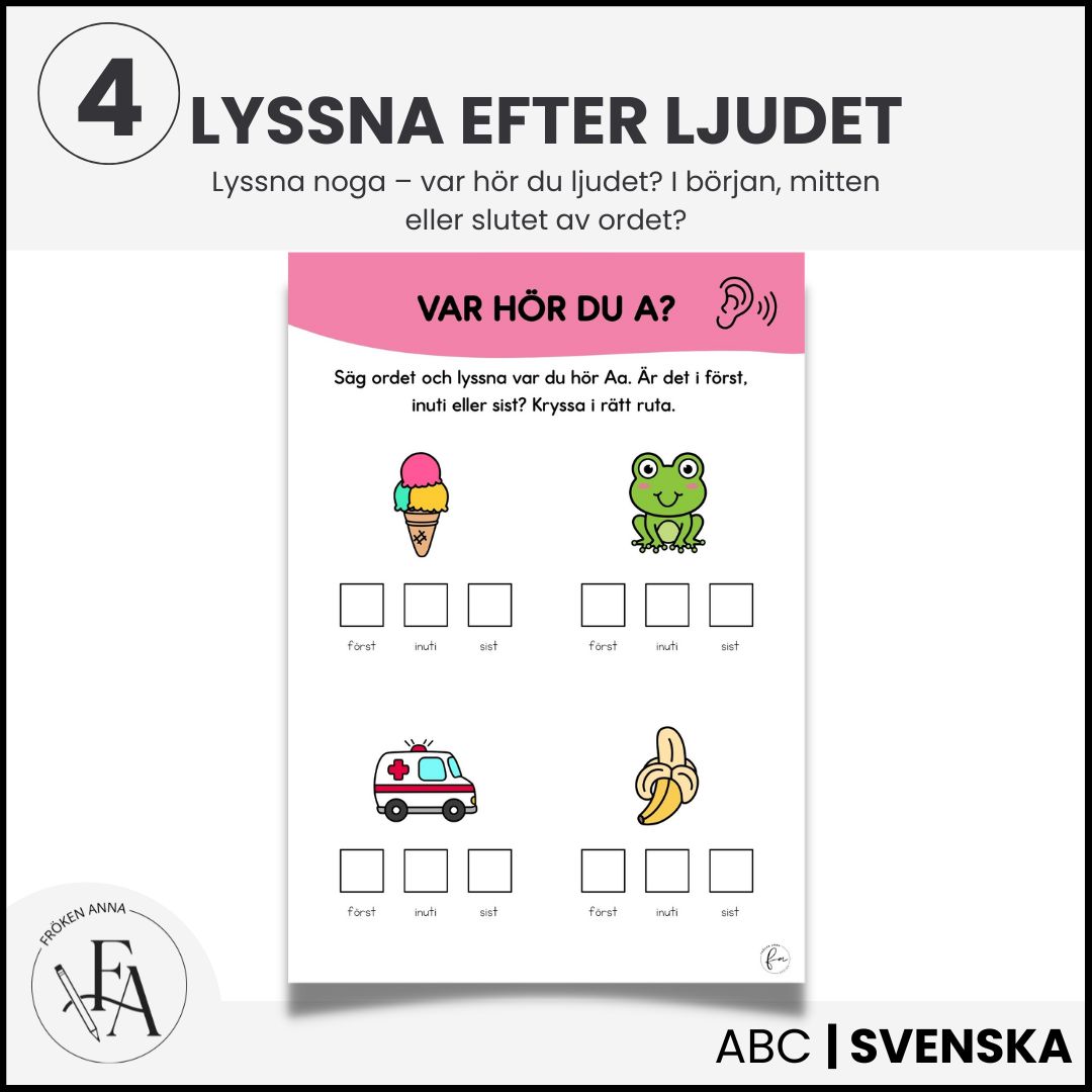 👂 Lyssna efter ljudet – Hitta var i ordet bokstavsljudet hörs: först, i mitten eller sist?