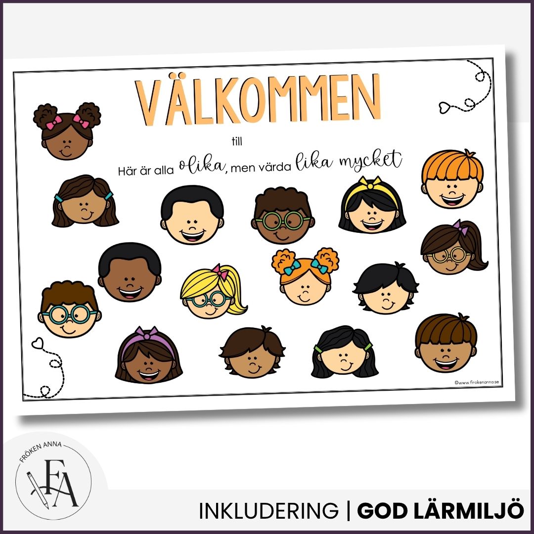 Dörrskylt med allas lika värde – tema: Här är alla olika, men alla är lika mycket värda.