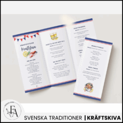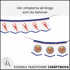 –Vimpel: med texten ”Kräftskiva” och kräf- och månmotiv.