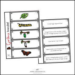 - Bilder över fjärilens livscykel till lärarens demonstration. Sätt med fördel sedan upp bilderna på tavlan eller en vägg så eleverna kan bekanta sig med cykeln efteråt. (Dessa finns enbart i färg)