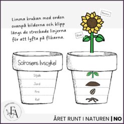 I detta interaktiva material får eleverna skapa en egen ”flippbok” om solrosen och träna på att sätta ut både solrosens delar, men även förståelse för processen från rot frö till blomma.