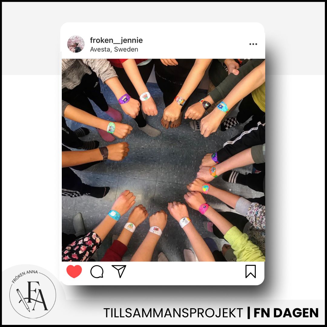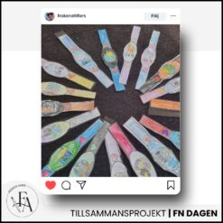Tips på arbetsupplägg: Låt barnen välja ett armband att färglägga och ta på sig runt handleden. Låt alla elever ställa sig i en ring och sträcka in armbanden i mitten. Ta ett foto på barnens händer och armband och sätt upp i klassrummet eller publicera i vecko-/månadsbrev eller kanske på klassens Instagram? Kommer bli en fin och symbolisk bild på hela klassen