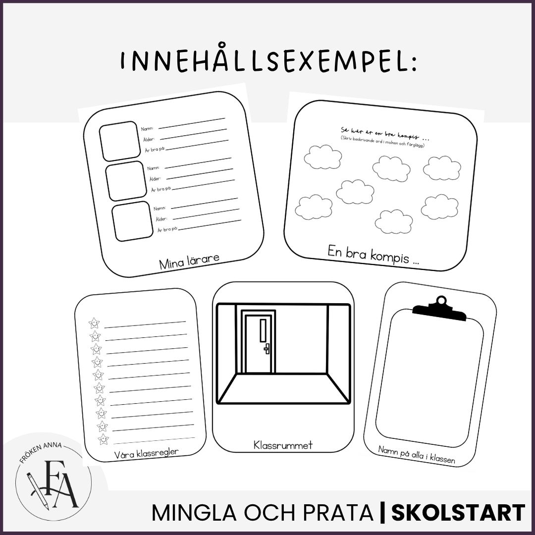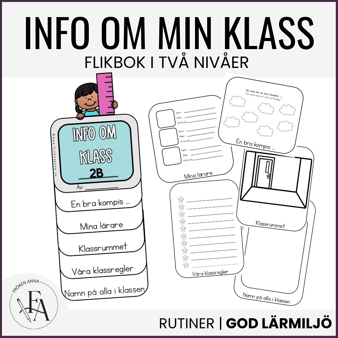 I detta kreativa uppgift får eleverna klippa, limma, färglägga och skriva om viktig info om klassen. Perfekt övning efter ett lov!