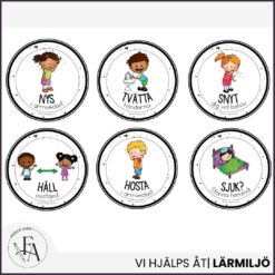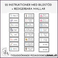 I detta superset får du allt du behöver för att skapa en tydlig klassrumsstruktur i klassrummet tillsammans med dina elever. Materialet har en tilltalande layout i neutrala färger och regnbågstema, samt bildstöd där det behövs.
