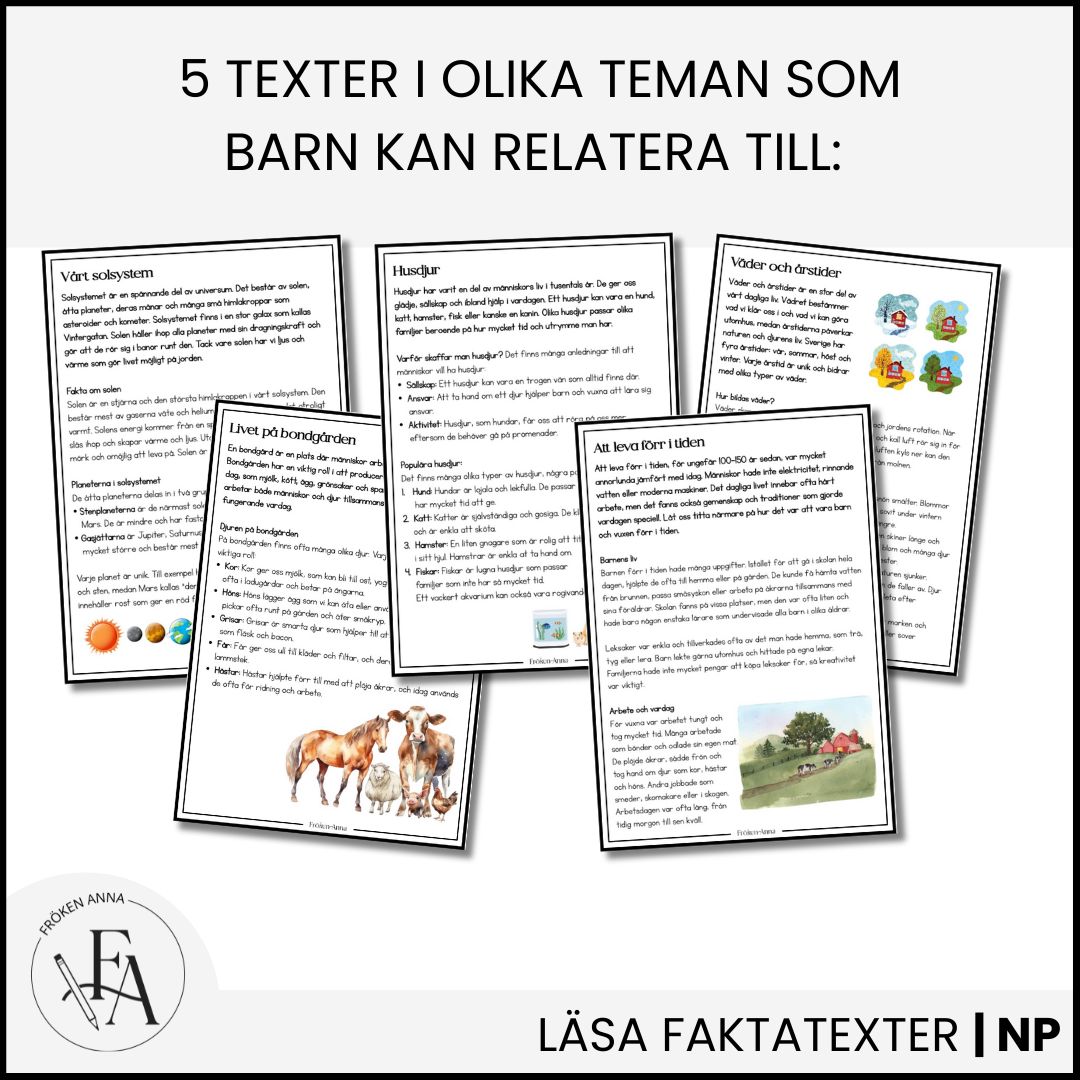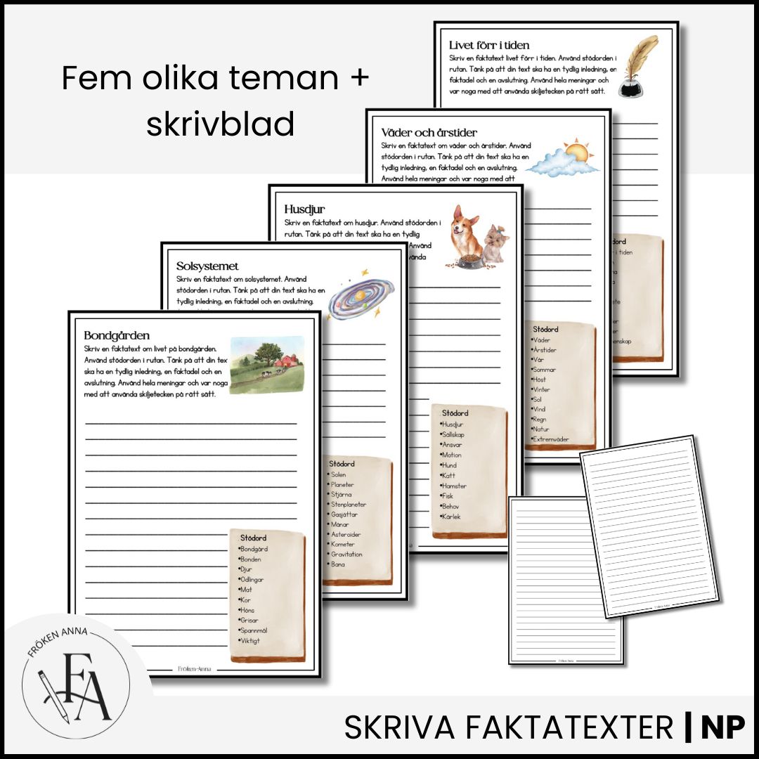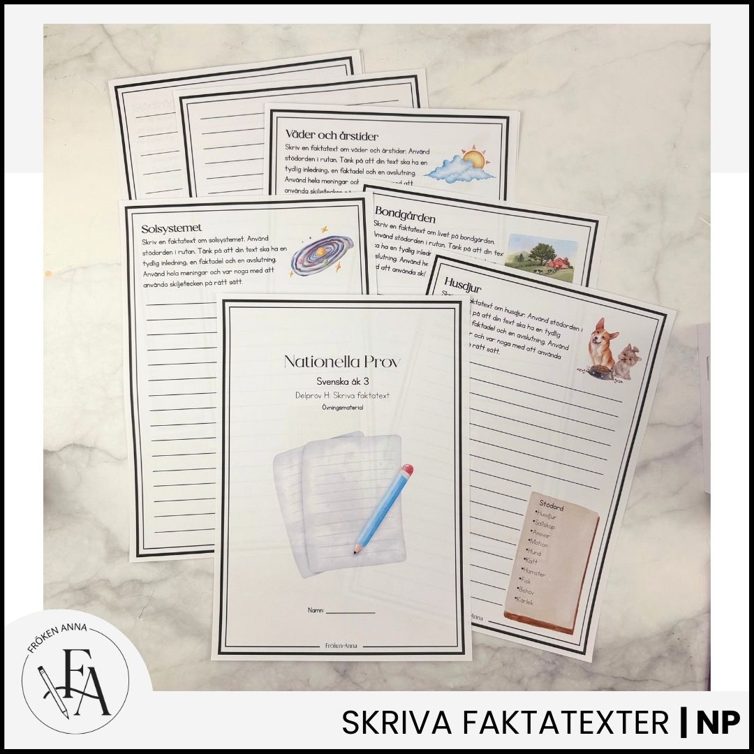 Förbered dina elever inför nationella provet i svenska med detta kompletta paket! Här ingår material för både läsa och skriva faktatexter samt berättande texter, anpassat för elever i årskurs 3. Perfekt för att träna viktiga färdigheter som läsförståelse, struktur och kreativt skrivande.