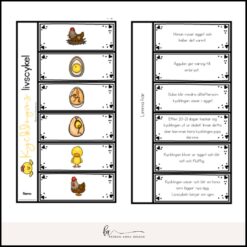- Bilder över kycklingens livscykel till lärarens demonstration. Sätt med fördel sedan upp bilderna på tavlan eller en vägg så eleverna kan bekanta sig med cykeln efteråt. (Dessa finns enbart i färg)