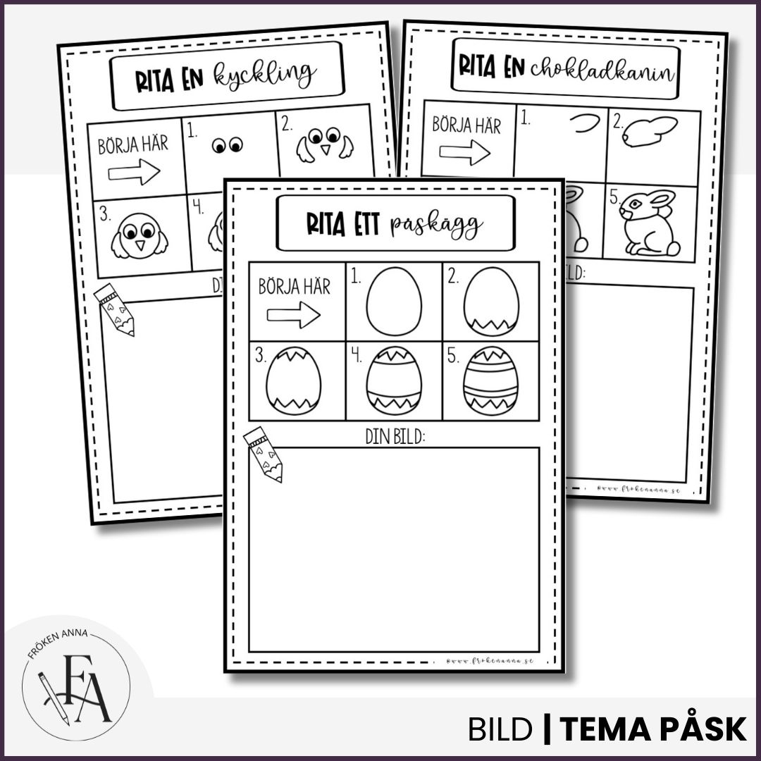 I detta material får eleverna steg för steg lära sig att rita åtta olika påskmotiv. Varje bild är uppdelad i tydliga moment som gör det enkelt för alla elever att hänga med, oavsett förkunskaper.
