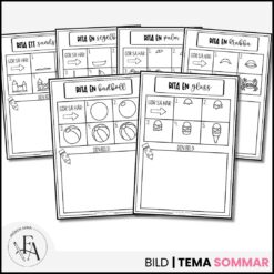 Det här materialet passar perfekt för sommarens bildlektioner, fritidsaktiviteter eller lediga dagar hemma. Barnen får lära sig att rita somriga motiv som badboll, palm, sandslott och glass – steg för steg!