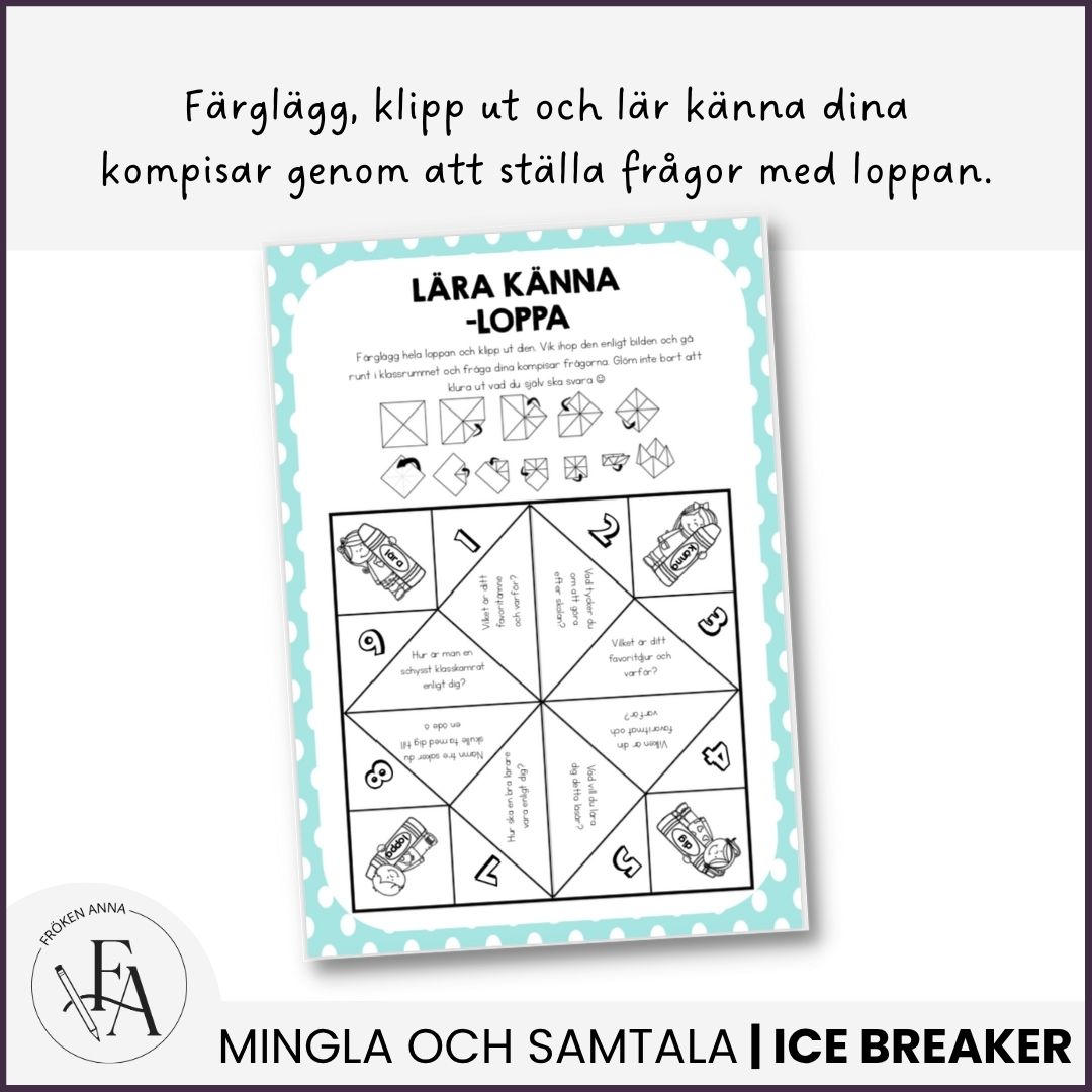I denna uppgift får elevera färglägga en loppa med lära-känna-dig-frågor, perfekt övning för först skoldagara efter ett lov, för att utveckla den kommunikativa förmågan eller när man ska lära känna en ny grupp.
