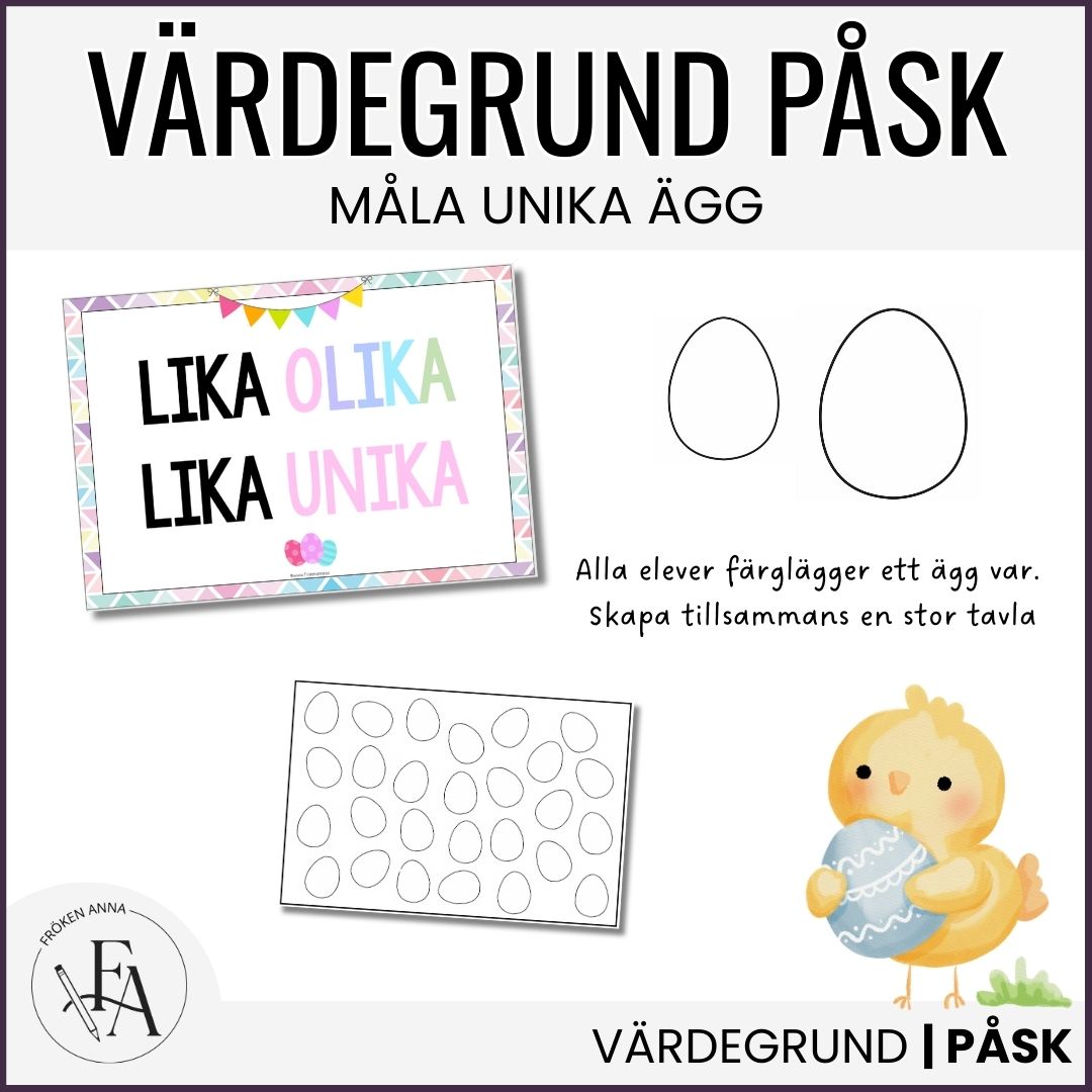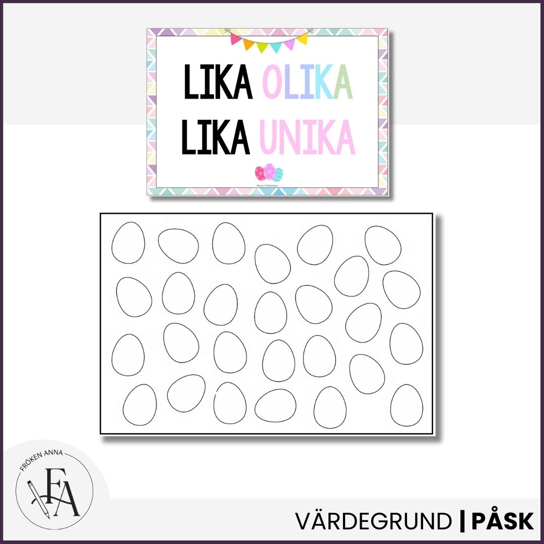 Jobba med tema ”Lika olika, lika unika” och låt alla elever måla var sitt ägg som ni sedan sätter upp på en stor tavla. Äggen finns i fyra storlekar så endast fantasin sätter gränserna för hur stort projekt ni vill göra. Klassrumskylt samt ram (A3/A4) ingår.