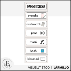 För att förstärka tydligheten ytterligare, finns det matchande klassrumsdekor och tavelinstruktioner i samma tema. Läs mer i klassrumspaket (Där också detta material ingår.