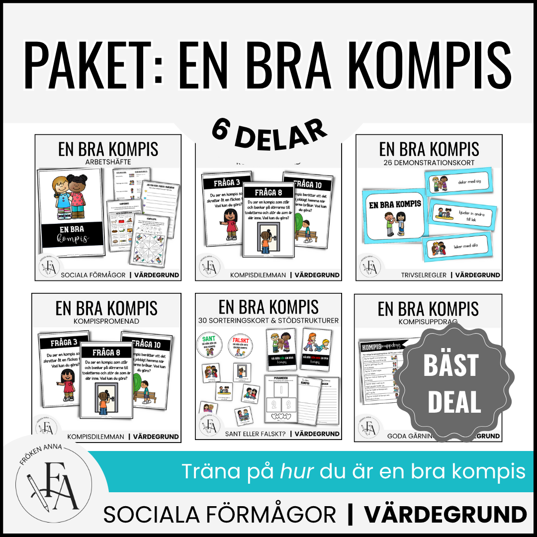 Ett stort materialpaket med bra kompis / värdegrundstema. Passar perfekt till vänskapsveckor, vänliga veckan etc.