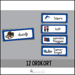 Innehåller bilder av samiska symboler och föremål, inklusive kåtor, renskötsel och traditionella dräkter, vilket gör lärandet både kreativt och engagerande.