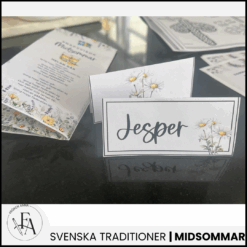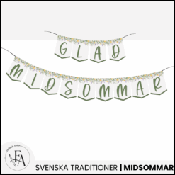 – 2 olika varianter av midsommarkransar med texten “Glad midsommar”