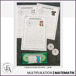 I detta paket får eleverna träna på multiplikationstabellerna 1-10 på ett lustfyllt sätt. Till varje tabell ingår två arbetsblad, ett i färg och ett i svartvitt där eleverna själva kan få färglägga bilderna. Eleverna kan snurra upp till 20 snurr per arbetsblad och till detta moment behövs ett gem och en penna. (Stick i pennan i gemet och snurra)