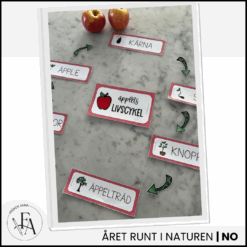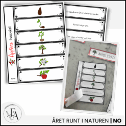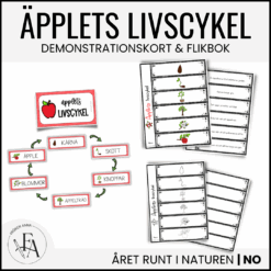Äpplets livscykel: Ord- och begreppskort samt flickböcker över livscykeln i färg och svartvitt.