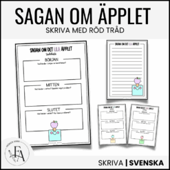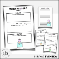 Sagan om det blå / lila / rosa äpplet. Strukturera upp din egen saga med stödstrukturen och skriv den sedan på det linjerade bladet. (Tre utföranden)