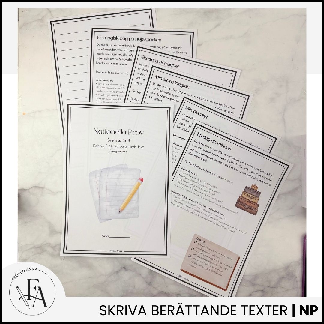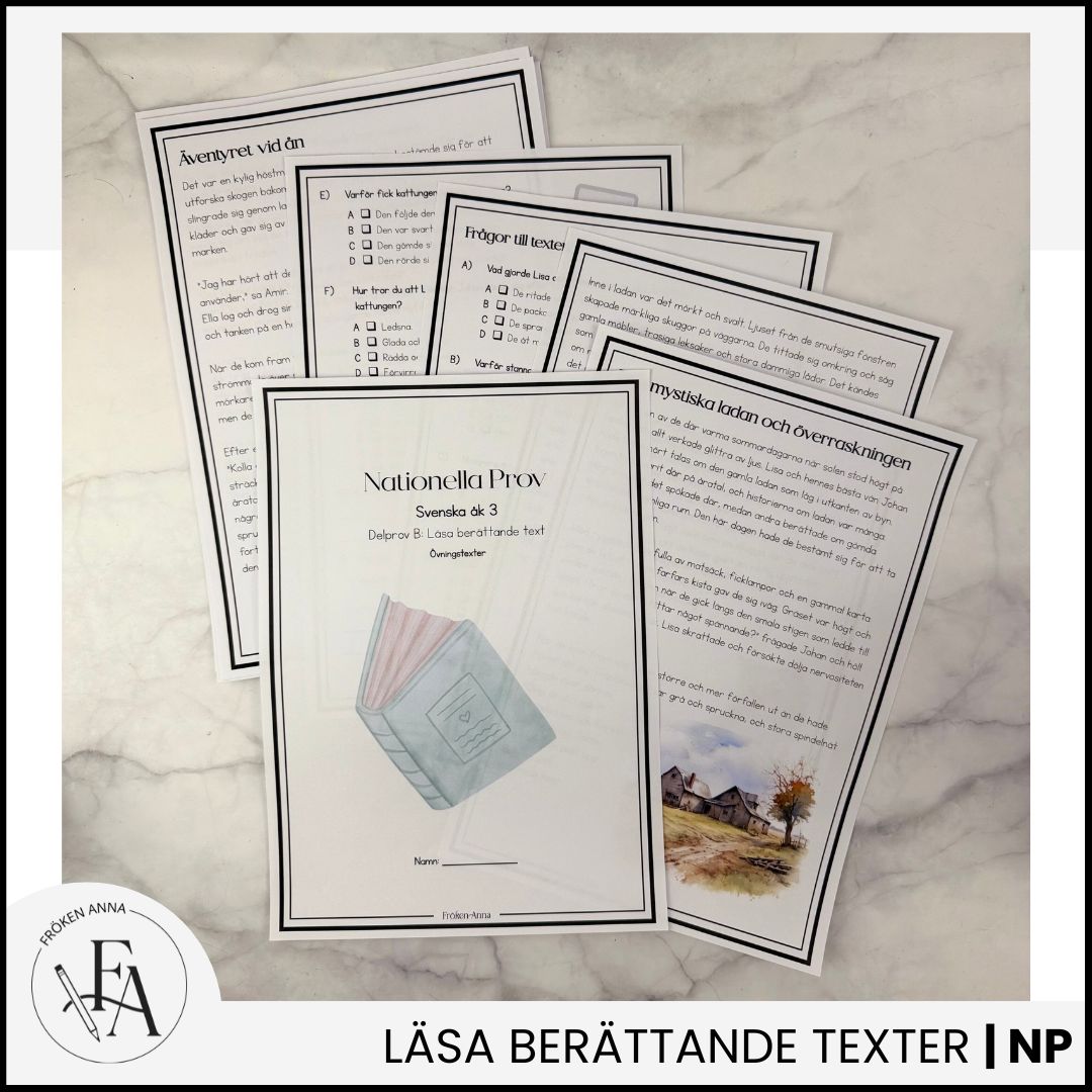Förbered dina elever inför nationella provet i svenska med detta kompletta paket! Här ingår material för både läsa och skriva berättande texter, anpassat för elever i årskurs 3. Perfekt för att träna viktiga färdigheter som läsförståelse, kreativt skrivande och struktur.