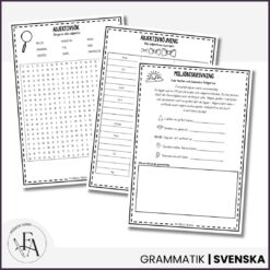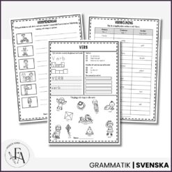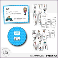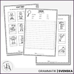 Detta kompletta paket om ordklasser innehåller tre pedagogiska arbetshäften samt tillhörande sorteringskort som tillsammans ger eleverna en tydlig och praktisk förståelse för substantiv, adjektiv och verb.
