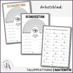 Färgglada posters och arbetsblad som hjälper barn att lära sig och visualisera tiokompisarna. Regnbågstian gör matematiken mer levande och uppmuntrar till kreativt lärande.