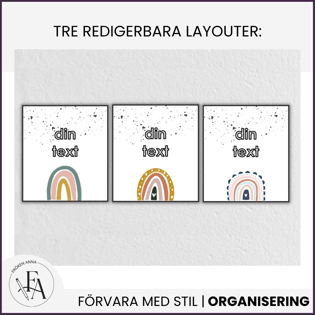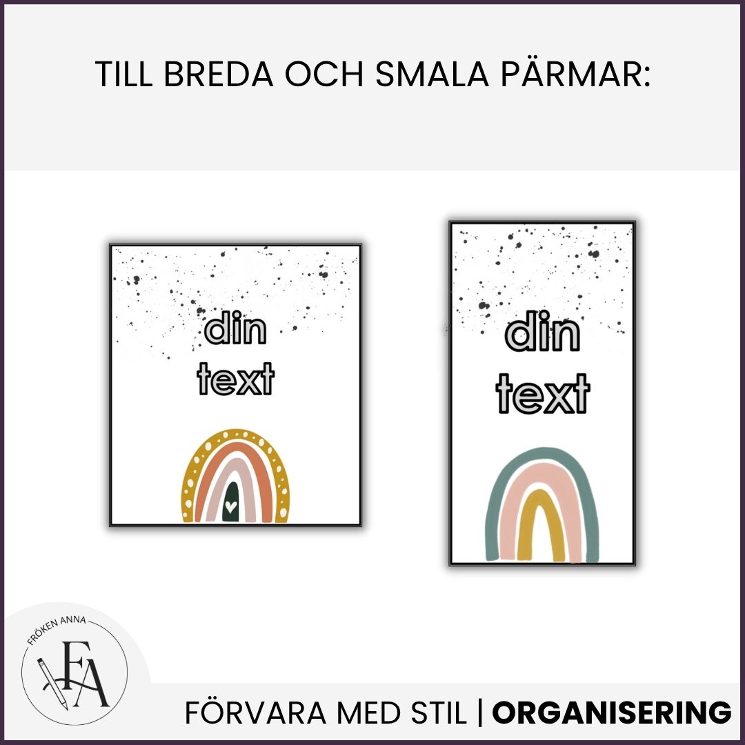 Snygga till bland dina pärmar med dessa pärmetiketter i regnbågstema. Etiketterna finnas anpassade till både breda och smala pärmar. Du redigerar själv texten PowerPoint eller Keynote.