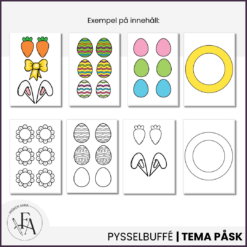 Eleverna får färglägga, klippa och klistra för att skapa sin egen påskkrans med ägg, blommor, morötter, rosett och kaninöron. Pysslet tränar finmotorik, kreativitet och följa instruktioner – samtidigt som ni skapar en härlig påskstämning.