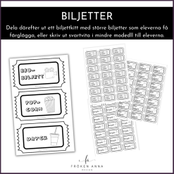 Röstsedlar, popcorn-, dryckes-, och biobiljetter samt filmrecension samt förslag på upplägg.