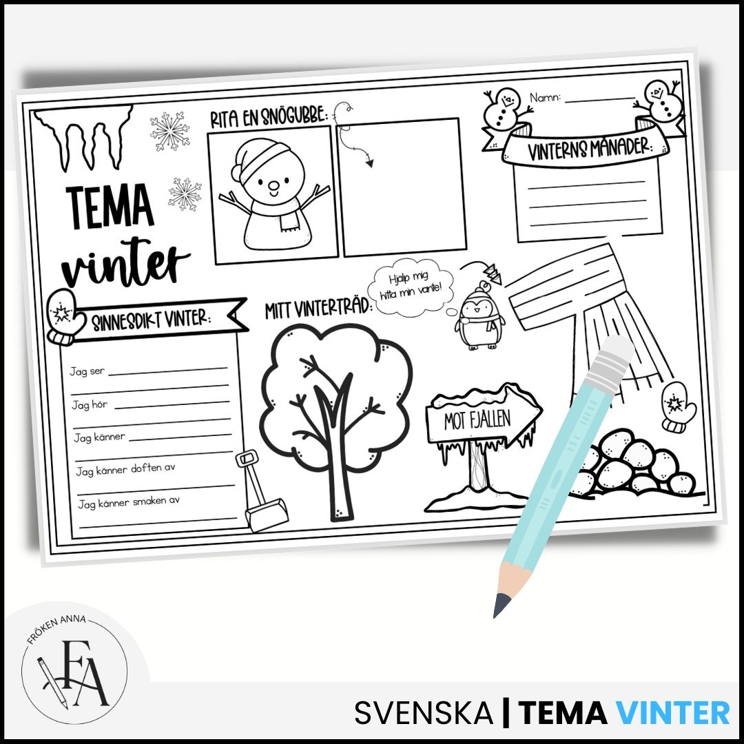 Eleverna får kombinera skapande, fantasi och finmotorik i ett vinterinspirerat arbetsblad som väcker lust och arbetsro. Materialet passar utmärkt att skriva ut i A3 för extra utrymme och kreativitet, men fungerar även i A4.