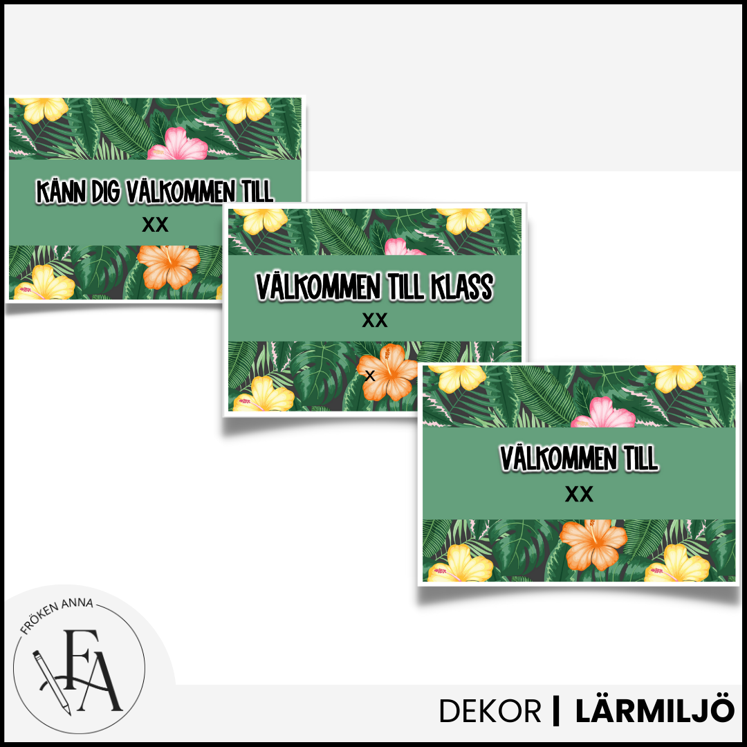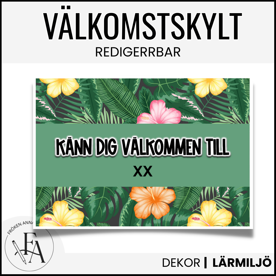Redigerbar välkomstskylt att sätta på tavlan, dörren eller rama in. Observera att du behöver programmet PowerPoint för att kunna redigera.