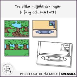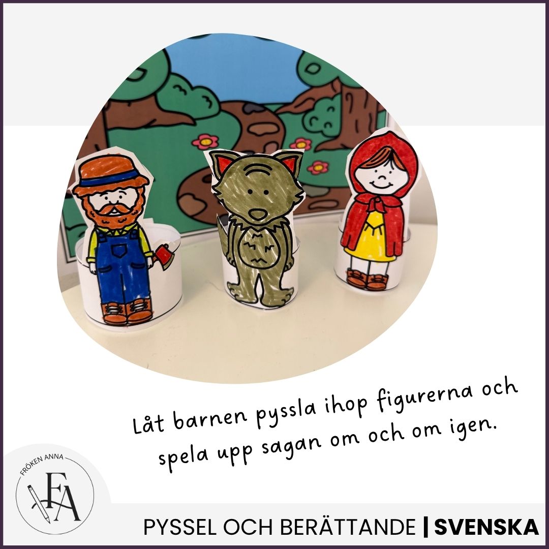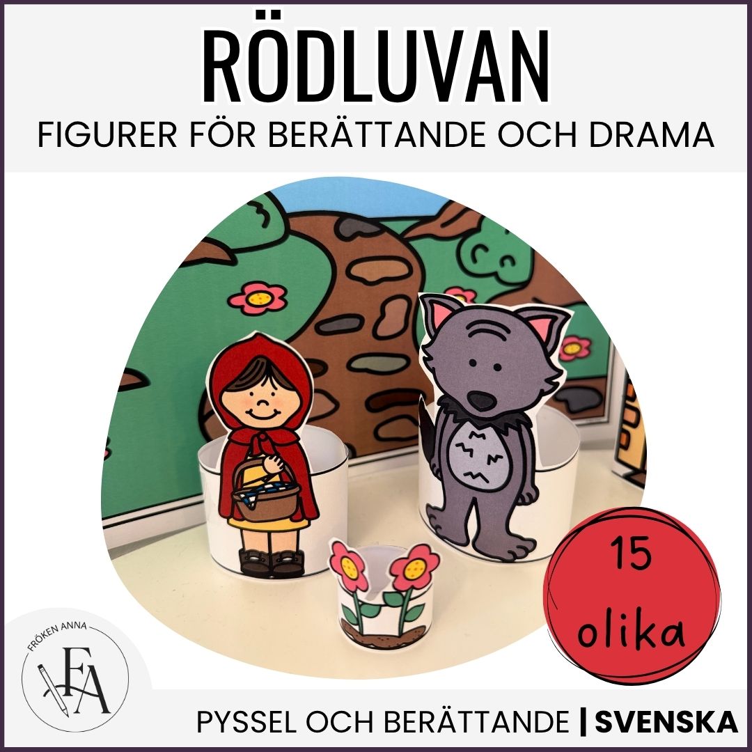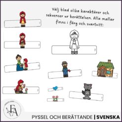 Ett kreativt och språkstimulerande material där barnen får färglägga, klippa, sätta ihop och spela upp sagan om Rödluvan. Perfekt för temaarbeten om sagor, berättande eller svenska som andraspråk.