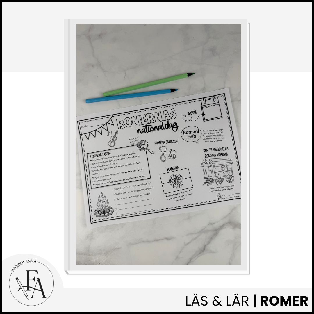 Ett färdigt och genomarbetat paket som hjälper eleverna att lära känna romernas kultur, historia och traditioner på ett åldersanpassat och engagerande sätt. Perfekt att använda i samband med romernas nationaldag den 8 april eller i undervisningen om Sveriges nationella minoriteter.