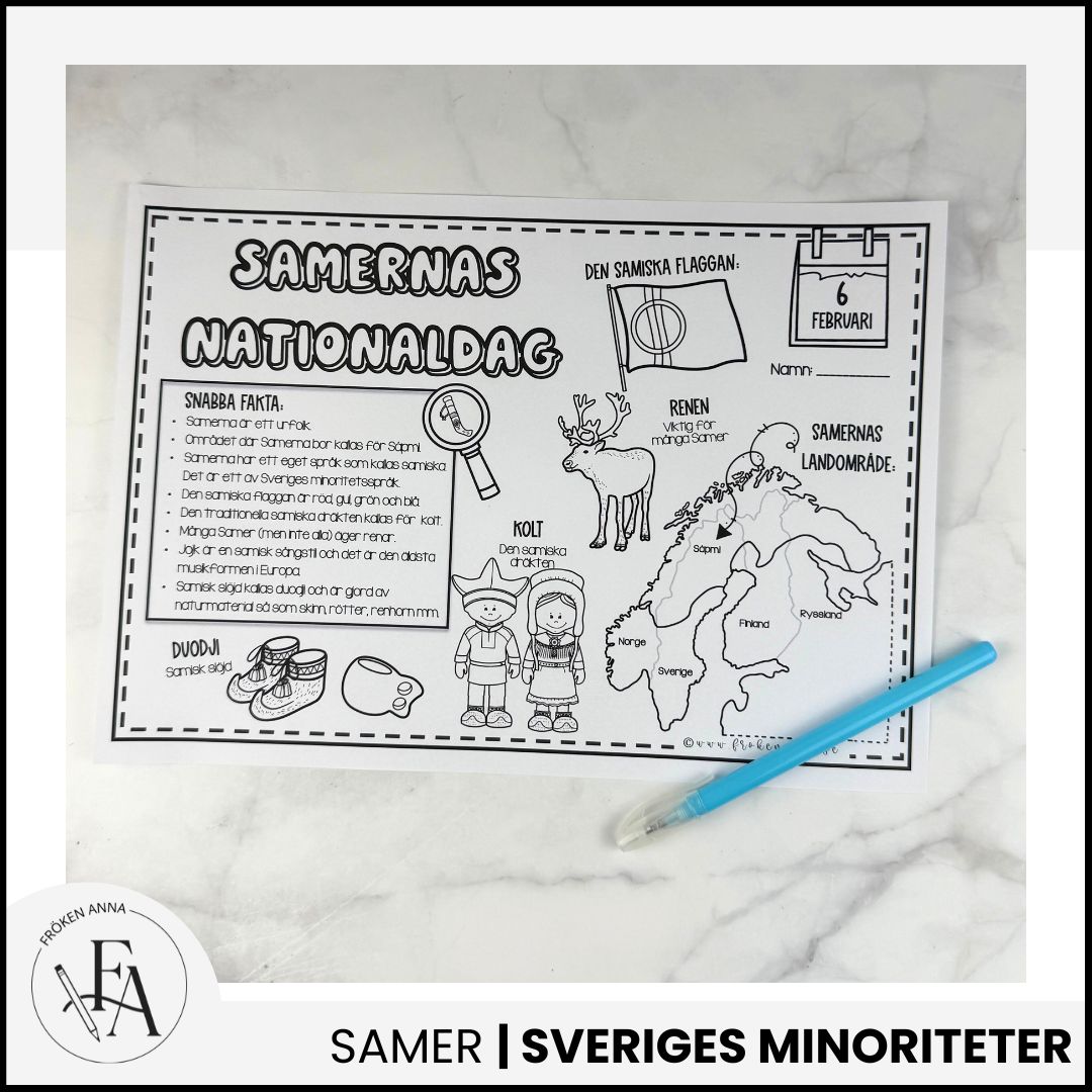 Detta material innehåller två lättlästa och visuellt utformade faktablad om samer och samisk kultur. Faktabladen passar utmärkt i undervisningen inför Samernas nationaldag den 6 februari eller som en del av ett SO-arbete om Sveriges ursprungsbefolkning och nationella minoriteter.