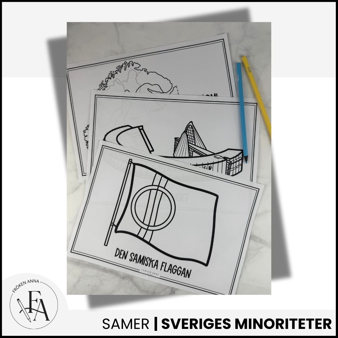Målarbilderna är ett enkelt och lustfyllt sätt att introducera samisk kultur och Sveriges nationella minoriteter i undervisningen. Materialet passar utmärkt som en kreativ aktivitet i samband med SO-arbete, Samernas nationaldag eller temaveckor om kultur och traditioner.