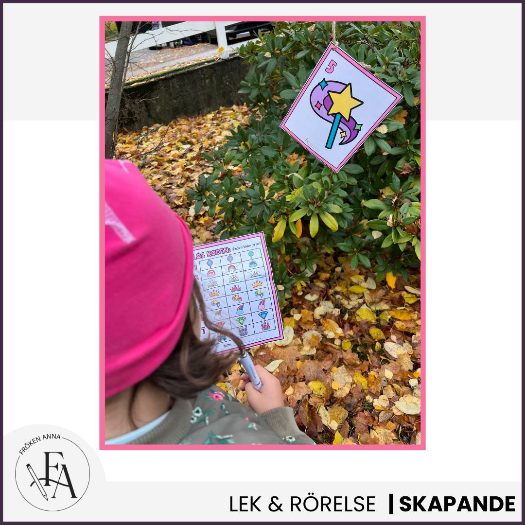 Låt barnen ringa in rätt motiv på talongen och lös hela koden innan de slutligen lämnar in den för rättning. Dra enkapp och se om det är rätt kod som behövs för att låsa upp skatten 🙂