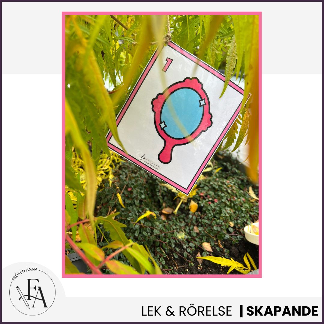 Häng upp en snitslad bana likt en tipspromenad eller göm de åtta motiven ute eller inne. Sätt antingen upp bilderna så att motivet syns eller limma fast det tomma pappret ovanpå och använd t.ex. mobillampan för att lysa bakom för att se motivet träda fram.