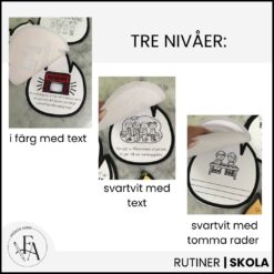 I detta material, som finns i tre nivåer, får eleverna läsa, skriva och färglägga hela förloppet genom en kreativ social berättelse i en brandbok. Materialet finns i färg och svartvitt med och utan text beroende på elevens förmåga.