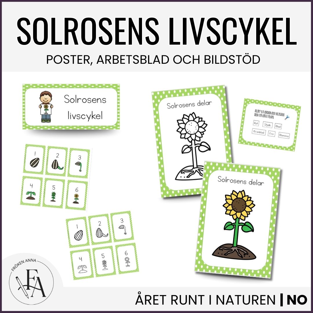 I detta paket får eleverna arbeta med solrosen ur två olika perspektiv – både dess uppbyggnad och dess livscykel. Materialet är visuellt, lättillgängligt och passar utmärkt i undervisning inom NO eller vid temaarbete om växter.