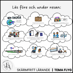Detta paket passar barn i förskole- och lågstadieåldern, både för familjer som ska resa och för pedagoger som vill arbeta med flygplan och resor i skolan eller förskolan.
