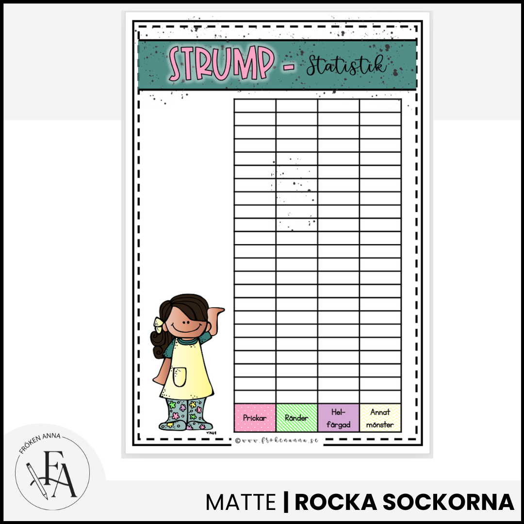 Passa på att väva in lite matematik i samband med ”Rocka sockorna” och gör ett strumpdiagram. ( Detta går såklart att göra när som helst under året förstås 🙂 ) . Skriv med fördel ut i A3 så det blir ett riktigt stort och visuellt papper. Filen finns i två färger: lila och mörkgrön.