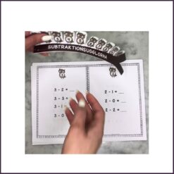 Materialet består av en tallinje med ugglor (1-10) samt 11 arbetsblad med subtraktion inom samma talområde. Skriv direkt på pappret eller använd tillsammans med clearoboard.