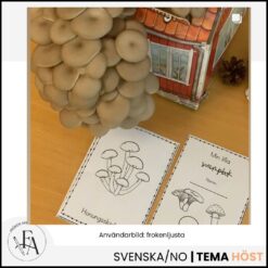 Låt eleverna knåpa ihop en egen liten svampbok, med några av våra vanligaste svampar. Materialet finns i tre nivåer så alla elever kan delta: i färg med svampens namn, i svartvitt med svampens namn samt i svartvitt för att skriva själv.